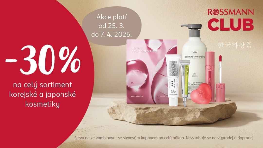 Od 25. 3. startuje exkluzivní akce pro členy Rossmann Clubu, kterou si prostě nemůžete nechat ujít:  SLEVA 30 % na CELÝ sortiment korejské a japonské kosmetiky!